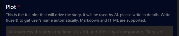When the prompts are separated like that, the player-facing plot is not read by the AI, and its tokens don’t count for the cost of the storyline or character. It’s just fluff for the eye of the potential player, to attract them to your story.